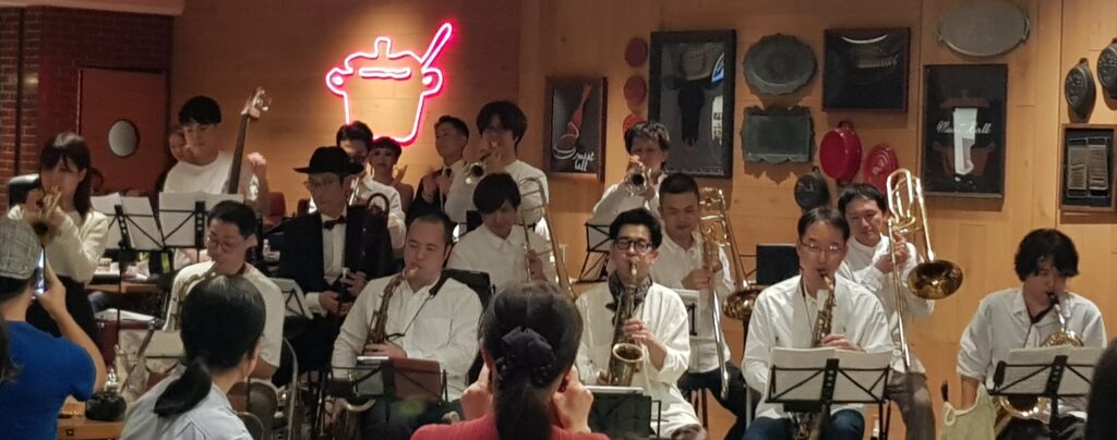 Heute wollen wir direkt nach dem Frühstück zum Tokyo City Fleamarket der allerdings im Stadtteil Shinagawa stattfindet. Entweder wir nehmen die Metro und sind eine Stunde unterwegs oder wir kaufen Tickets für Japan Rail und die Monorailbahn und sind in einer halben Stunde da. Da das Wetter immer schlechter wird, entscheiden wir uns für den kürzeren Weg und so fahre ich endlich mal mit einer Monorailbahn. Der Flohmarkt ist nur zum Teil überdacht und die Händler im Freien packen zum Teil schon wieder ein. Wir merken schnell, dass, wie meistens, sehr viel Bekleidung verkauft wird und trennen uns daher für den Tag. Ich schaue mir in Ruhe alles an, denn eigentlich bin ich nur zum gucken da, ich brauche ja nichts. Gegen halb ein Uhr mache ich mich auf den Weg zu einer Metrostation und da ich ja Zeit habe, nehme ich wieder mal kleine Straßen und freue mich an hübsch bepflanzten Gärten und der Normalität eines Vororts. Bei einem kleinen Tempel mache ich Halt und schaue mir den Friedhof an. Bald geht es mit der Metro weiter und kurz nach 15 Uhr stehe ich vor dem entzückenden Café „Apple“. Leider sind alle fünf Tische und auch die fünf Plätze an der Theke besetzt, aber hier will ich unbedingt Pause machen, also frage ich, ob ich draußen warten kann. In dem Moment wird ein Tisch frei, zwei Damen werden von der Theke umquartiert und ich bekomme dort einen Platz. Ich dachte ja immer, Japan sei das Land des grünen Tees und das ist auch nicht falsch, aber es ist, vor allem in Tokio, auch das Land des Kaffees. Selbst so kleine Cafés wie das „Apple“ bieten Kaffee aus verschiedenen Regionen und in diversen Röstungen an. Für Banausen wie mich, die ihren Kaffee mit Milch ruinieren, gibt es allerdings nur die Standardröstung. Getrunken wird hier meist Filterkaffee und ich schaue dem älteren Besitzer fasziniert zu, wie er pro Tasse eine Portion Bohnen direkt in den Filterbeutel mahlt, die Tasse mit heißem Wasser vorwärmt und dann einen kleinen Filter auf die Tasse setzt und den Kaffee aufbrüht. Zum Kaffee gibt es für mich eine leckere Walnuss-Tarte mit braunem Zucker. Inzwischen hat es sich so eingeregnet, dass ich nur noch heim möchte. Im Hotel schreibe ich meinen Blog und dann kommt auch schon Boris. Zum Abschluss des Tages gehen wir in die Food Hall des nahen Einkaufszentrums zu „Mr. Farmer“ Veggi Burger essen, Boris lädt ein. Zusammen mit dem „International Film Festival“ finden gerade die „Music Days“ statt, deshalb spielt eine Big Band Swing und es wird dazu getanzt und begeistert geklatscht.