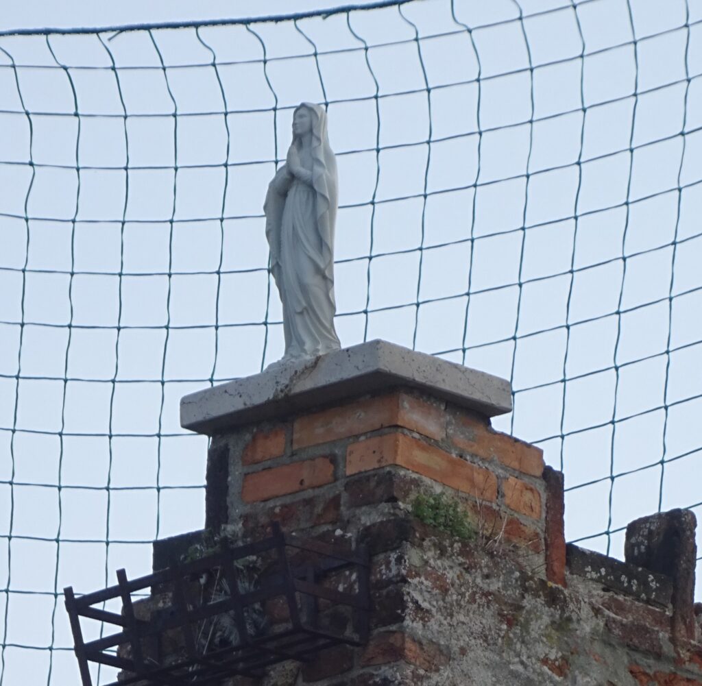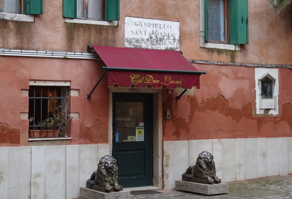 Irgendwie fühlen wir uns beide nach dem Frühstück total gestopft und nehmen vorsorglich Martinas Kräutertropfen. Dann ziehen wir los zum Bahnhof um von dort zur Rialtobrücke zu fahren und über den Markt zu schlendern. Die Brücke ist bereits voller Touristen und der Markt ist bereits fast abgebaut. Da hätten wir wohl doch früher aufstehen sollen. Wir schlängeln uns durch die Gassen um bei „da Lele“ einen Ombre, also ein Achtele als Frühschoppen zu uns zu nehmen. Martina ist das allerdings noch etwas zu früh. Es ist viel los und ich freue mich sehr, dass er die letzten Jahre gut überstanden hat. Weiter geht es zum schönen Campo Santa Margherita wo wir einen Caffè zu uns nehmen um unsere Lebensgeister zu wecken. Weil wir zum Mittagessen wieder in unsere Lieblingsbar im Cannaregio wollen, gehen wir zum Anleger Zattere, schauen noch kurz ob wir in eine Gondelwerkstatt hinein spickeln können — leider nicht und fahren dann zur Piazzale Roma und von dort geht es zu Fuß weiter. So kommen wir etwas spät zu unserem super leckeren Lunch und beschließen anstatt ins Peggy Guggenheim Museum nochmal nach Murano und dort ins Glasmuseum zu gehen. Auf dem Weg schauen wir in die Kirche Sankt Alvise rein und bewundern die Tromp l’oeil Decke. Leider sind wir dann für das Glasmuseum fünf Minuten zu spät dran und bis wir wieder von Murano weg kommen hat auch San Michele, die Friedhofsinsel geschlossen. Deshalb fahren wir zurück zu Sankt Alvise, schmunzeln über die Madonnenstatue die dort den Fußballplatz beschützt, machen uns auf den Heimweg und ruhen uns noch ein bisschen aus. Und zum Abschluss geht es ein letztes Mal ins Restaurant um die Ecke.