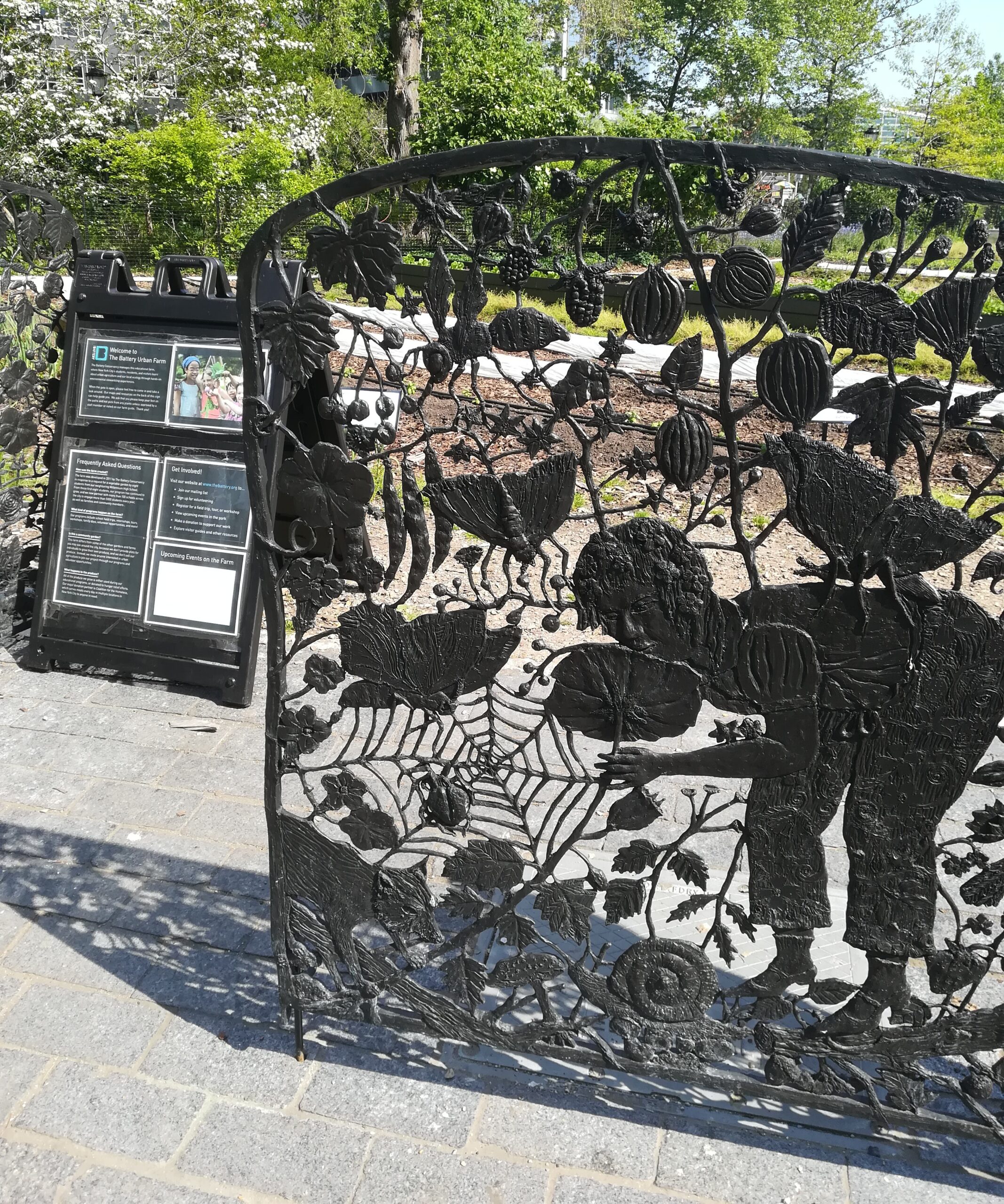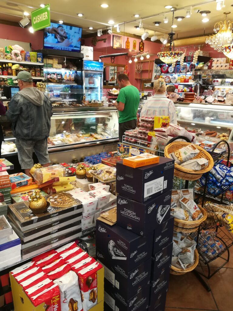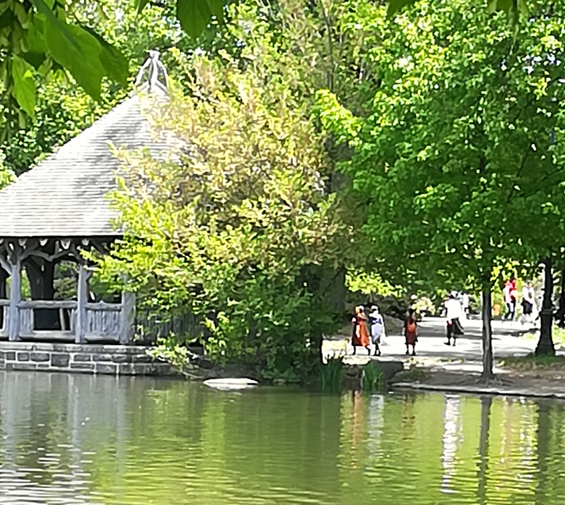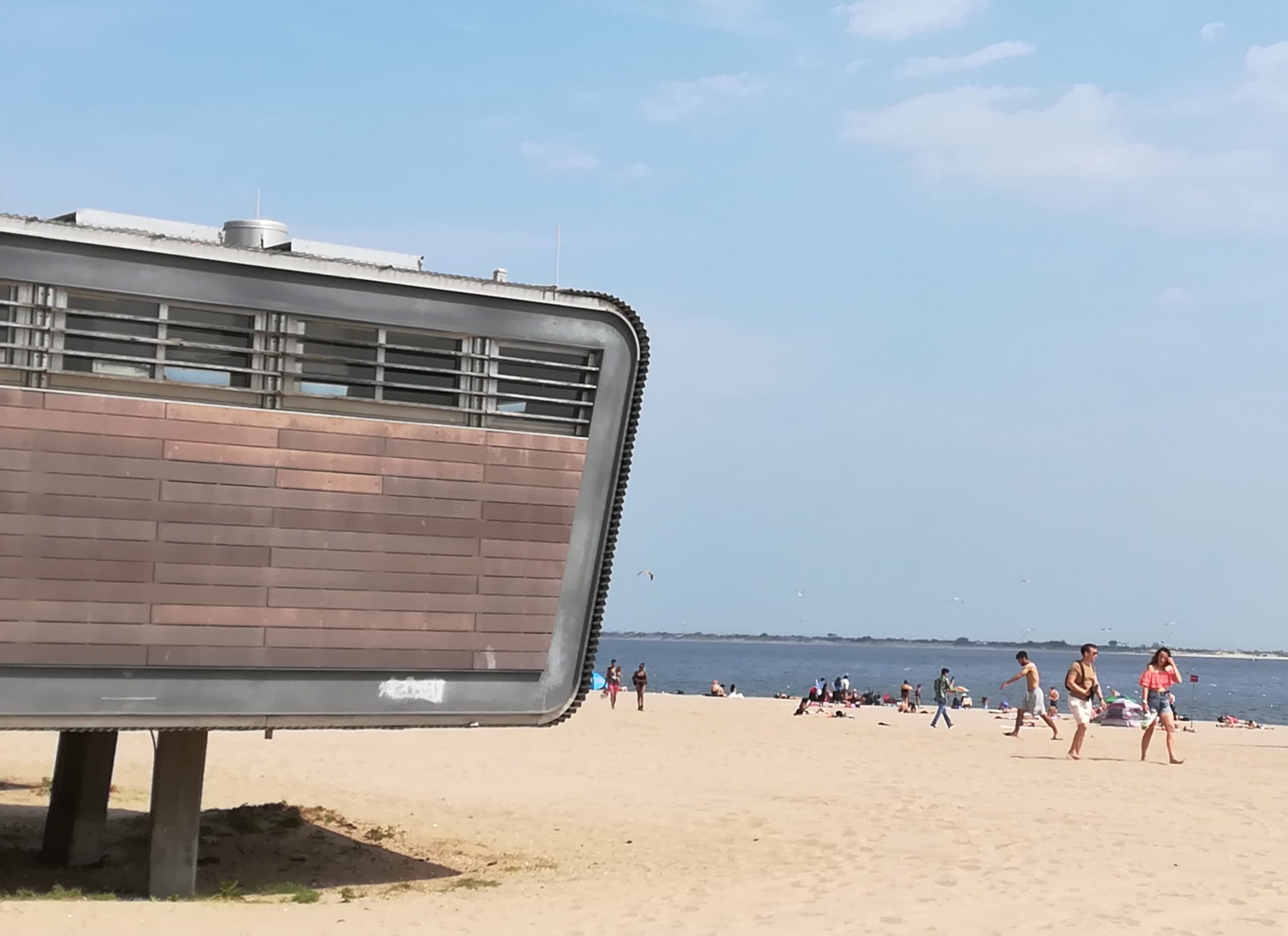 Das Wetter ist mit 27 Grad hochsommerlich und ich beschließe mir Brighton Beach, auch als Little Odessa bekannt, anzuschauen. Aber erst mal ans Wasser und dank schwarzer Unterwäsche kann ich auch ganz ungeniert ein Sonnenbad nehmen, denn meinen Bikini hatte ich dummerweise nicht eingepackt. Besonders cool finde ich die futuristisch anmutenden Umkleide-/Toilettenbauten. Anschließend schlendere ich die Brightwater Avenue entlang an vielen Läden mit kyrillisch beschrifteten Schildern vorbei. Zum Schluss kaufe ich noch ein paar Lebensmittel, denn die Preise sind hier erheblich niedriger. Außerdem gibt es tolle Sachen die ich nicht kenne, z.B. Käse und Süßkram. Jetzt knurrt mir aber der Magen, ich folge also einem Restaurant-Tipp und gehe in ein russisches Lokal und bestelle Shurpa und Campote. Mal schauen was ich bekomme – eine sehr leckere Suppe mit viel Dill und eine Art verdünnter Kompottsaft in dem ein Stück Pflaume schwimmt. Im Hintergrund läuft MTV aus Russland.