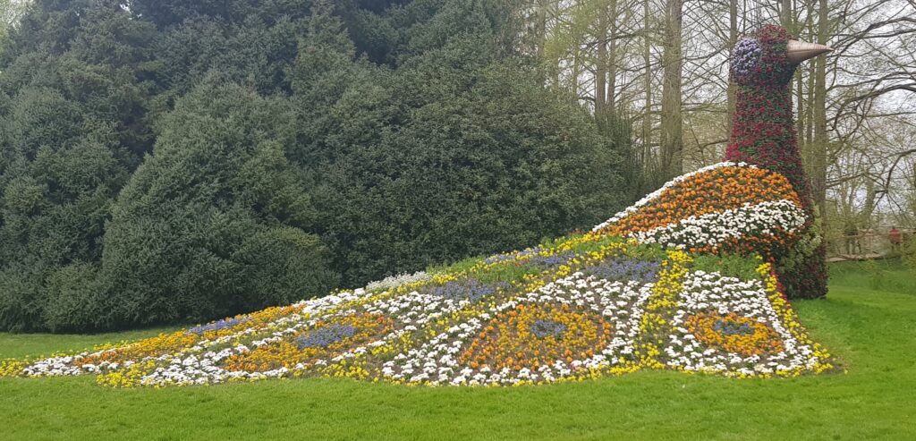 Nach dem Aufstehen gehe ich gleich zum Bäcker um Brötchen und den bestellten Hefezopf zu holen. Wir frühstücken sehr gemütlich und kommen deshalb etwas spät los, auch weil das Wetter sich mit Nieselregen etwas unleidig zeigt. Aber wir lassen uns die gute Laune nicht verderben, denn heute geht es auf die Insel Mainau, mit ihren 45 Hektar die drittgrößte Insel im Bodensee (nach den Inseln Reichenau und Lindau). Bald stehen wir staunend vor riesigen Tulpenbeeten und Ulla erzählt, dass die Anordnung der verschiedenen Farben mit Hilfe von Drohnen fotografiert wird, damit es jedes Jahr gleich aussieht. Wir schlendern weiter zum Blumenpfau, einem der Wahrzeichen der Insel und danach in das Palmenhaus und obwohl ich kein Orchideenfan bin, bin ich doch jedesmal beeindruckt von den über 3000 Exemplaren. Soviel anzuschauen macht hungrig, deswegen ist unsere nächste Station das Schlosscafé mit seinen wunderschönen und leckeren Torten. Wir schauen uns noch die Souvenirs an, da stellt Julia plötzlich fest, dass es schon recht spät ist und wir sausen zurück zum Auto. Daheim sammele ich schnell alles zusammen, Ulla packt mir noch den halben Hefezopf ein und fährt mich dann nach Singen, damit ich nicht umsteigen muss. Wir verabschieden uns und schon ist mein Miniurlaub vorbei.