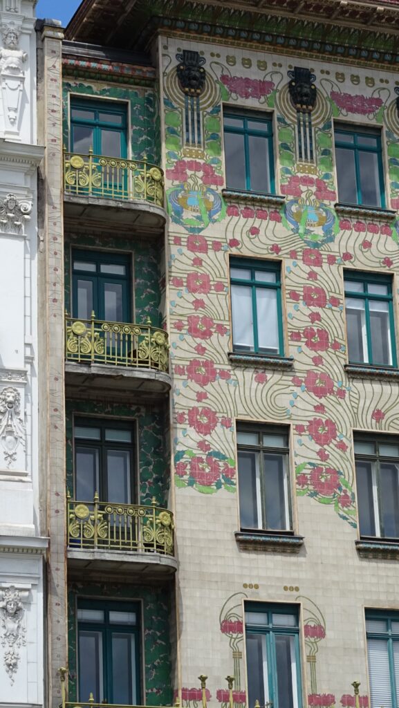 Nachdem wir gestern die Walkingtour gemacht haben, wollen wir heute fast alles was im Reiseführer noch an Jugendstil erwähnt wurde anschauen. Unser erster Halt ist die Strudelhofstiege mit hübschen Lampen und einem Fischbrunnen der uns sehr gefällt. Wir fahren weiter zur österreichischen Postsparkasse deren Schriftzug gerade geputzt wird, sind aber etwas enttäuscht, denn das Gebäude ist doch eher nüchtern. Zum Stadtspark ist es nicht weit, wir genießen das Grün und am Ende erwarten uns die zwischen 1903 und 1907 von Friedrich Ohmann und Josef Hackhofer erbauten Flussportalpavillons und Ufertreppen, Jugendstil vom Feinsten. Auch das Tor zur Haltestelle ist wunderschön und wir nutzen die Chance um zum Naschmarkt weiterzufahren. Dort wird der Eingangsbereich gerade umgebaut, aber der Betrieb dieses Touristen-Lieblingsortes geht natürlich weiter. Überall bekommt man Oliven oder Baklava angeboten und in den Lokalen gibt es viel zu essen. Wir schlendern an den Ständen entlang zu unserem eigentlichen Ziel, dem Majolika-Haus, dessen Fassade komplett mit den wunderschönen Fliesen von Alois Ludwig bedeckt ist. Ein Stückchen weiter steht das Wahrzeichen des Wiener Jugendstils, das Sezessionsgebäude. Was mich jedesmal fasziniert ist, dass es, obwohl reich verziert, so schlicht ausschaut. Wir kaufen ein paar Postkarten und dann geht es weiter, wieder zum Spittelbergviertel wo sich viele nette Cafés und die meisten Plattenläden befinden. Am Abend wollen wir eigentlich in ein Lokal, das leckeres Gemüse in der Auslage hat, aber dann entscheiden wir uns kurzfristig um und kochen noch einmal Pasta.