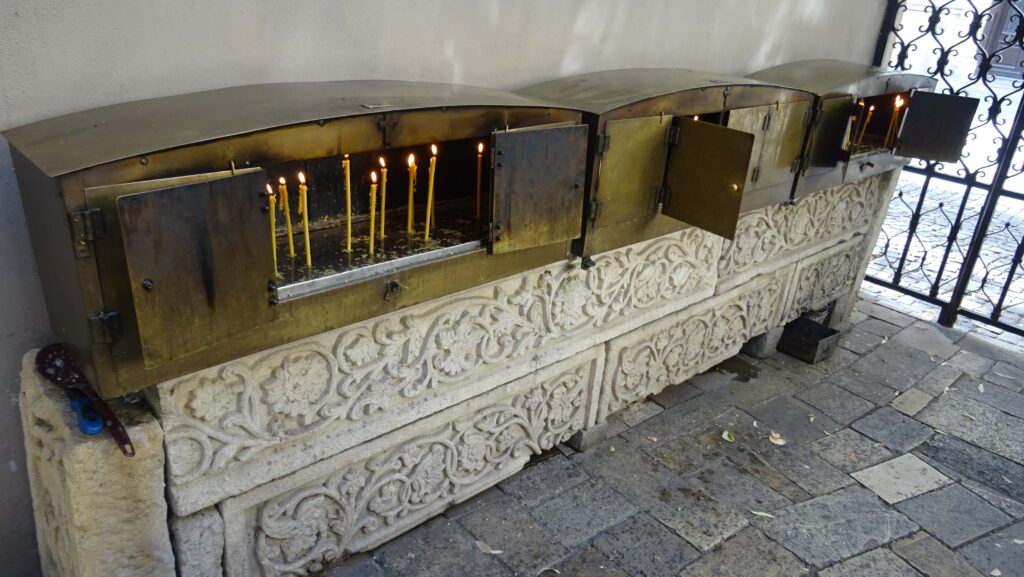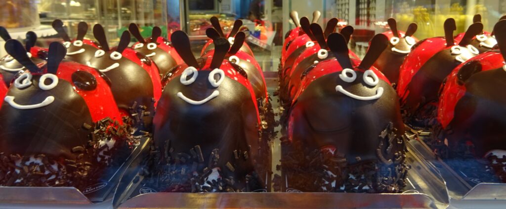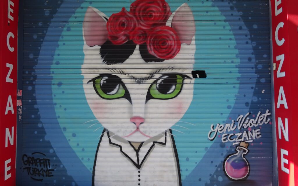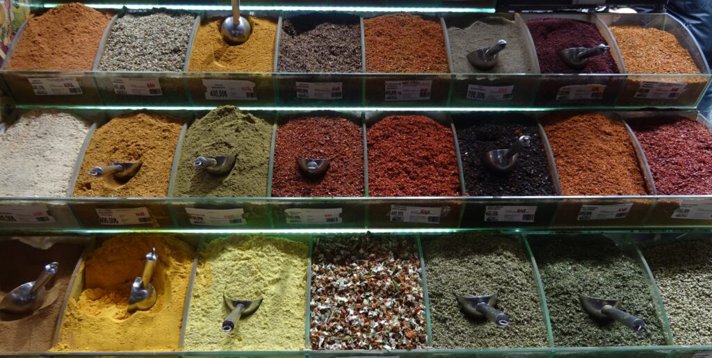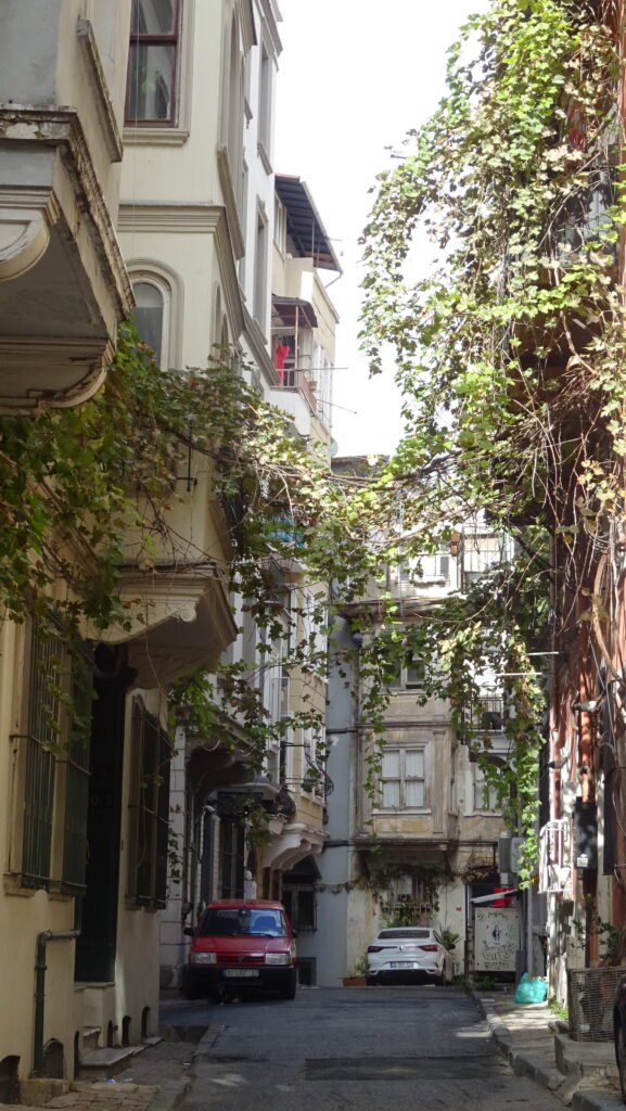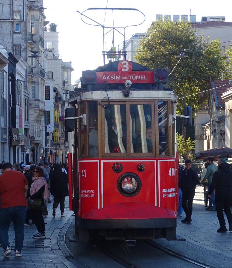 Als erstes wollen wir uns heute einen Stadtplan zu holen und ein Sammelticket für die Blaue Moschee, die Hagia Sophia und die versunkenen Zisternen. Die Tourist Information liegt gut versteckt im dritten Stock eines alten Gebäudes in einer Touristenmeile und dort erfahren wir, dass die Blaue Moschee keinen Eintritt kostet und man mit dem Ticket nur in einen Teil der Hagia Sophia rein kommt. Dafür haben wir jetzt jeder einen, zwar etwas rudimentären Stadtplan, der aber immerhin einen Metroplan hat. Anschließend fahren wir mit einer riesigen Fähre wieder nach Eminönü, bestaunen den alten Bahnhof, der ursprünglich eine der Endstationen des Orient Express gewesen ist und gehen dann durch den Park Richtung Topkapi Palast. Hier schauen wir uns alles an, was frei zugänglich ist und machen uns dann auf die Suche nach einem Café. Dabei landen wir im Fashion District von Istanbul und finden fast nicht mehr hinaus. Mit Hilfe von Google Maps und ein paar Läden, an die wir uns erinnern, finden wir schließlich den Weg zum „Café Sabor“ und essen nochmal jeder ein Stück von dem leckeren home made Käsekuchen. Der letzte Punkt auf der heutigen Agenda ist der Bücher Basar. Er ist überschaubar und als wir ihn am anderen Ende verlassen, stehen wir — oh nein — wieder im Fashion District. Zum Glück wissen wir jetzt den Weg hinaus. Wir folgen den Schildern zur Metro Station vorbei an den vielen wunderbaren, beleuchteten Moscheen und sind so ganz schnell wieder in Beyoglu, unserem Viertel.